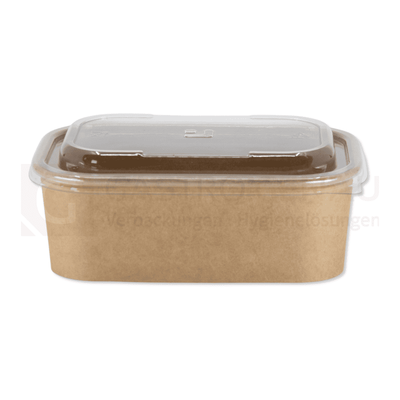 Hochwertiger Rechteck-Container in zeitgemäßer und verkaufsfördernder Bio-Optik. Aus brauner Hartpappe mit auslaufsicherer Innenbeschichtung. Hervorragend geeignet für Take-Away, Streetfood, Kantinen, Lebensmitteleinzelhandel, Metzgereien uvm.