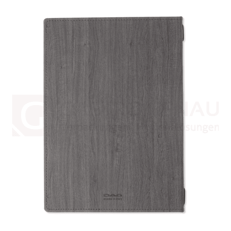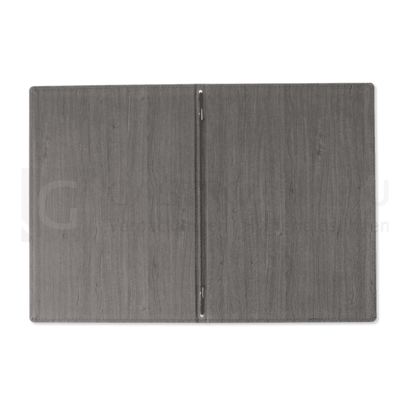 Die Speisekarte der Serie Wood vereint Eleganz und Prestige in einem hochwertigen Design. Gefertigt aus strapazierfähigem Kunstleder im edlem Farbton Ebenholz, überzeugen die handgenähten Nähte und abgerundeten Ecken durch erhöhte Widerstandsfähigkeit gegen Verschleiß. Das minimalistische Design mit klaren Linien setzt Ihre Menüs stilvoll in Szene und ermöglicht eine aufrechte, halbgeöffnete Präsentation auf dem Tisch.